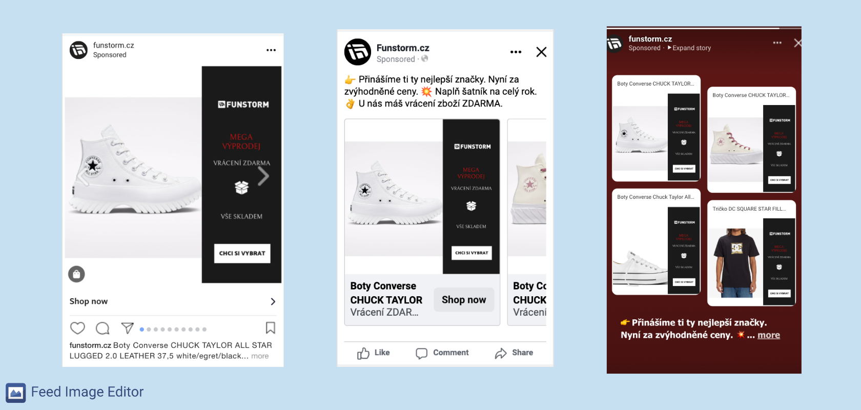 Tedy ne, že bychom se s klientem ohledně reklamních kampaní zrovna nudili, zaměření Funstormu je na sociální sítě jako stvořené. Ale zároveň jsme neustále hledali cestu, jak posunout laťku ještě více. Ve zboží, službách, ale i reklamních formátech. Zde jsme v případě Facebooku poměrně narazili, jelikož dynamické reklamy se vesměs za několik let příliš nevyvinuly – pozor, mluvím teď spíše o možnostech kreativních úprav jako takových, ne o výkonu kampaní. To bylo radosti, když Facebook přidal možnost nahrát si do reklam vlastní rámeček! Paráda, ale co dál?